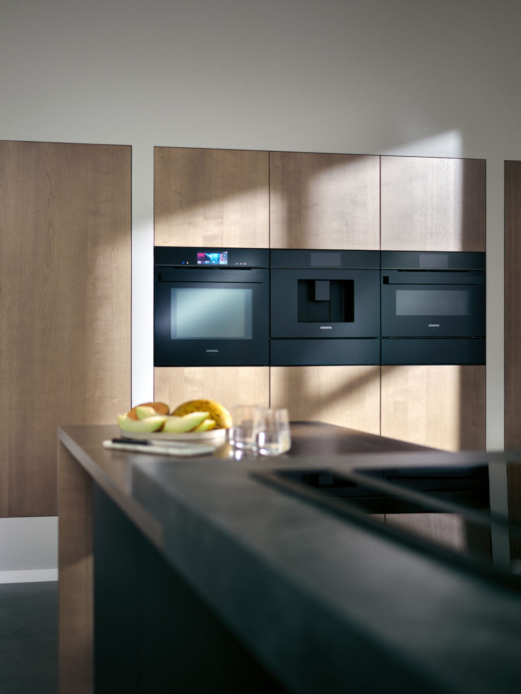 Dankzij de integratie in een hoge kast ontstaat er een strak geheel in je keuken en werk je op een comfortabele hoogte. Met persoonlijke instellingen en slimme functies haal je het cafégevoel in huis, zonder concessies te doen aan uitstraling. Dat is nog eens goed bedacht van Nuva Keukens.
