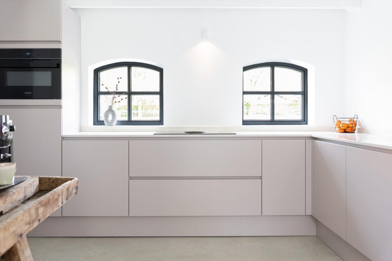We hadden vooraf al heel duidelijk in ons hoofd hoe de keuken eruit moest zien. Onze eerste vraag was dan ook of een keuken in cashmir kleur mogelijk was. Dat bleek geen probleem. Verder wilden we geen bovenkasten vanwege het balkenplafond, een gemarmerd werkblad en vooral veel lades. Al onze wensen bleken haalbaar en ook de keuze voor de apparatuur was snel gemaakt.