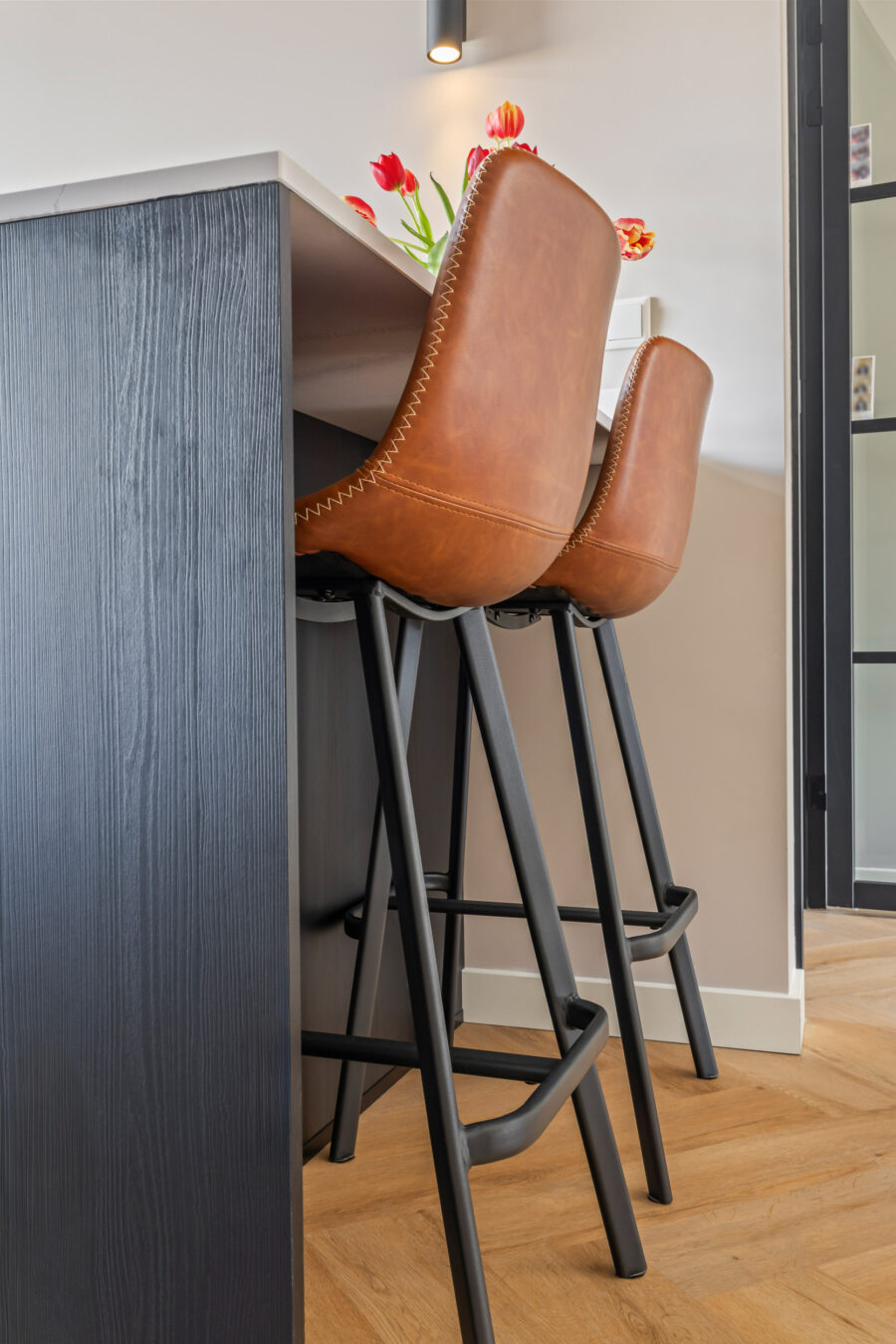 Een bargedeelte maakt van de keuken een plek om samen te komen. Een zitplek voor koffie, ontbijt of een borrel. Een plek om te werken en voor gezelligheid tijdens het koken. Zo loopt koken moeiteloos over in samen zijn. Een gezellig geheel.