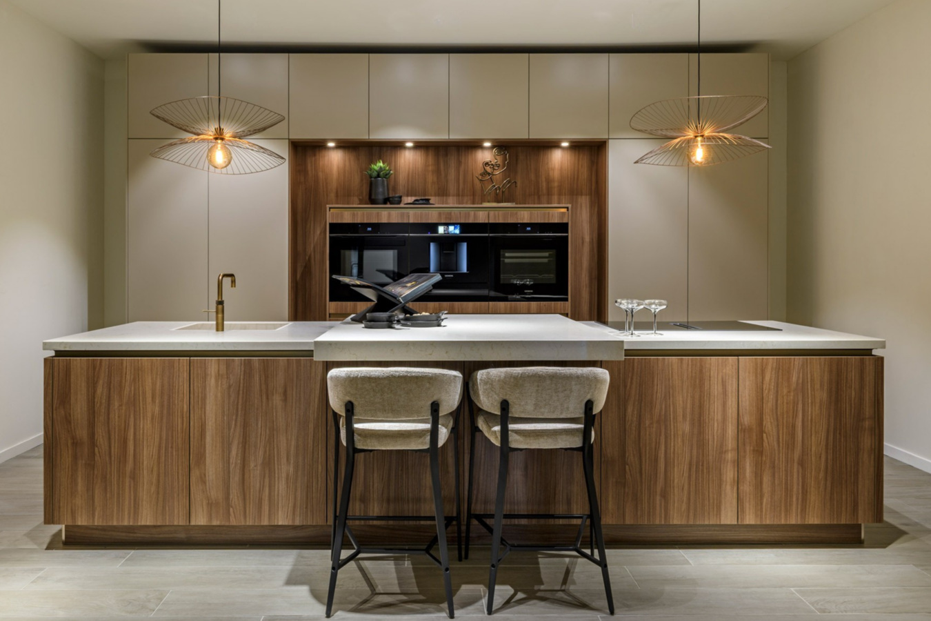 Een bargedeelte maakt van de keuken een plek om samen te komen. Een zitplek voor koffie, ontbijt of een borrel. Een plek om te werken en voor gezelligheid tijdens het koken. Zo loopt koken moeiteloos over in samen zijn. Een gezellig geheel.