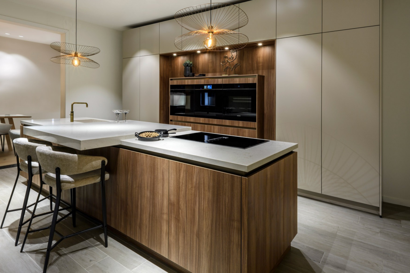 Een greeplijst is een bepalend detail voor de sfeer in de keuken. Subtiel en rustig in RVS, krachtig in zwart of juist luxe in goud of donker geborsteld messing. Een push-to-open systeem (zonder greeplijst) behoort uiteraard ook tot de mogelijkheden binnen een greeploze keuken.