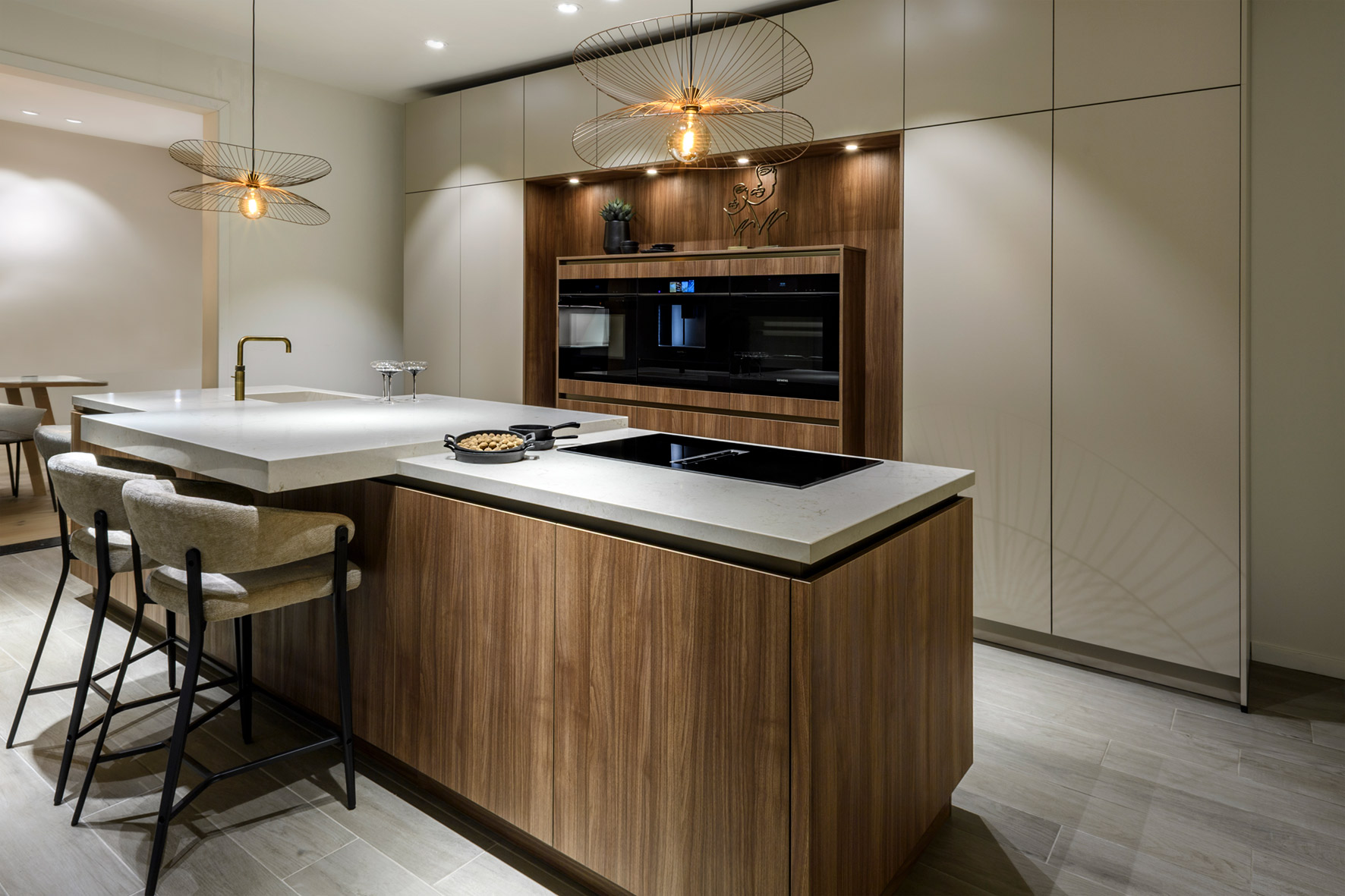 Een greeplijst is een bepalend detail voor de sfeer in de keuken. Subtiel en rustig in RVS, krachtig in zwart of juist luxe in goud of donker geborsteld messing. Een push-to-open systeem (zonder greeplijst) behoort uiteraard ook tot de mogelijkheden binnen een greeploze keuken.