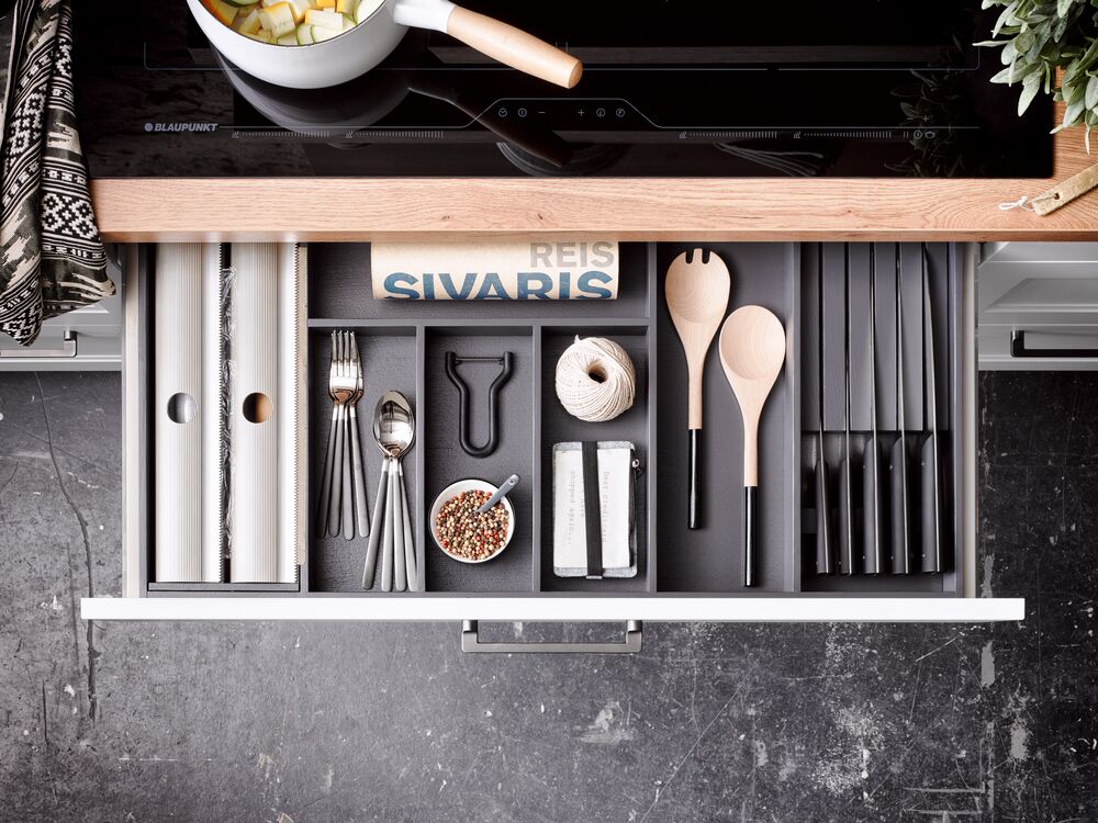 • Besteklades en -bakken. Een besteklade of flexibele bestekbak zorgt voor overzicht en hygiëne. De afgeronde vormen maken schoonmaken eenvoudig, terwijl elk bestekstuk zijn eigen plek krijgt.
