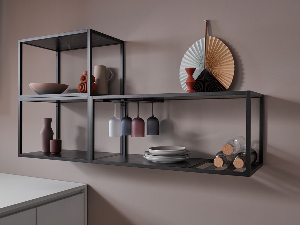 Orde in de keuken betekent niet dat het saai hoeft te zijn. Met de wandrekken van Häcker voeg je een persoonlijk accent toe aan je interieur. Deze zijn volledig naar wens samen te stellen: