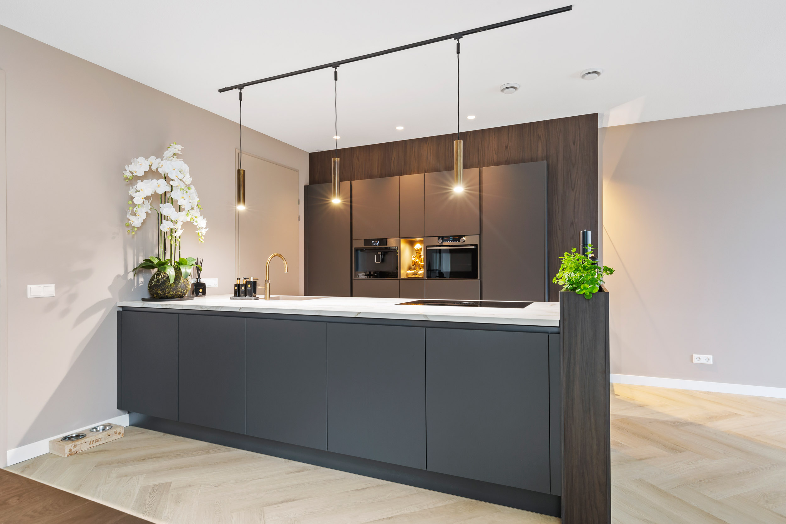 Een greeplijst is een bepalend detail voor de sfeer in de keuken. Subtiel en rustig in RVS, krachtig in zwart of juist luxe in goud of donker geborsteld messing. Een push-to-open systeem (zonder greeplijst) behoort uiteraard ook tot de mogelijkheden binnen een greeploze keuken.