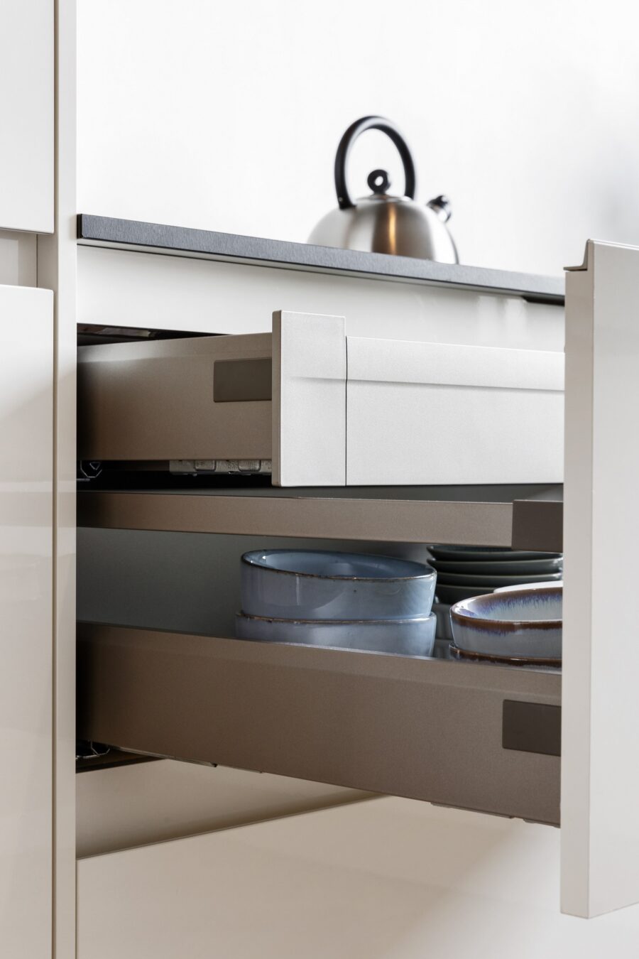 Omdat het een nieuwbouwwoning betreft, wilden ze een keuken die perfect aansluit bij de nieuwe leefruimte. Een praktische indeling en de juiste apparatuur speelden daarbij een belangrijke rol. Door het advies van de showroomadviseur konden ze hun ideeën verder verfijnen en ontstond er een keuken die goed past bij hun woning en manier van leven.