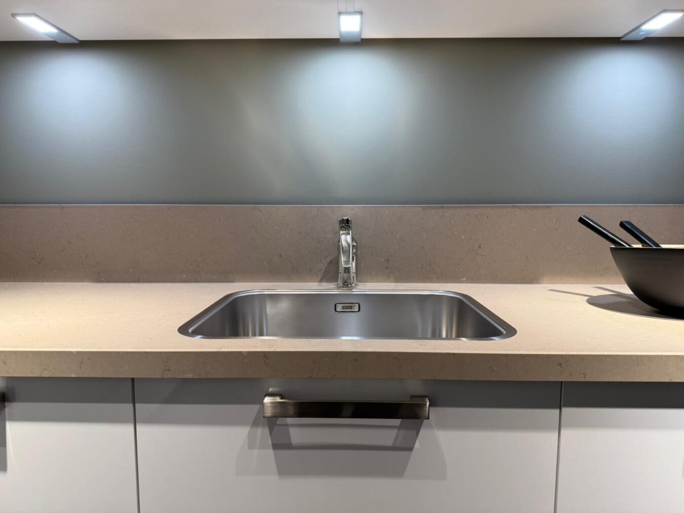 Ondiepe bovenkasten geven de keuken een verfijnde uitstraling. Het oogt niet alleen minder massief, maar biedt ook extra opbergruimte. Dankzij de geringere diepte stoot je je hoofd minder snel dan bij standaard bovenkasten. En met geïntegreerde verlichting ontstaat er een lichte en prettige werkzone.